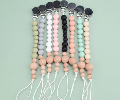 100% BPA Free food grade silicone soft beads pacifier chain for baby!